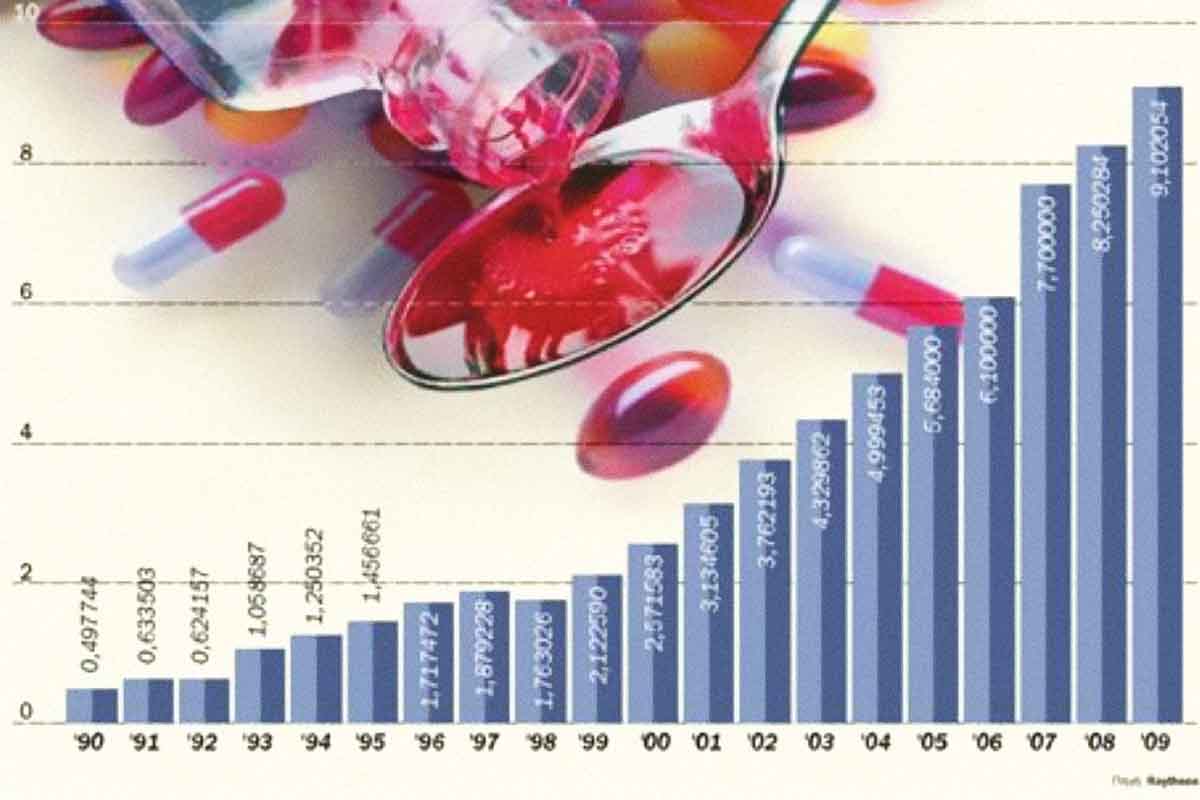 Ο πίνακας που δημοσιεύεται (εικ. επάνω) αποτυπώνει ακριβώς την ταχύτητα με την οποία αυξάνονται κατ΄ έτος οι δαπάνες για φάρμακα. Η φαρμακευτική δαπάνη σχεδόν διπλασιάστηκε σε πέντε χρόνια και τετραπλασιάστηκε στη δεκαετία. Πρόκειται προφανώς για μη ανεκτή κατάσταση, ειδικά σε τούτες τις συνθήκες δημοσιονομικής και χρηματοδοτικής κρίσης του κράτους.