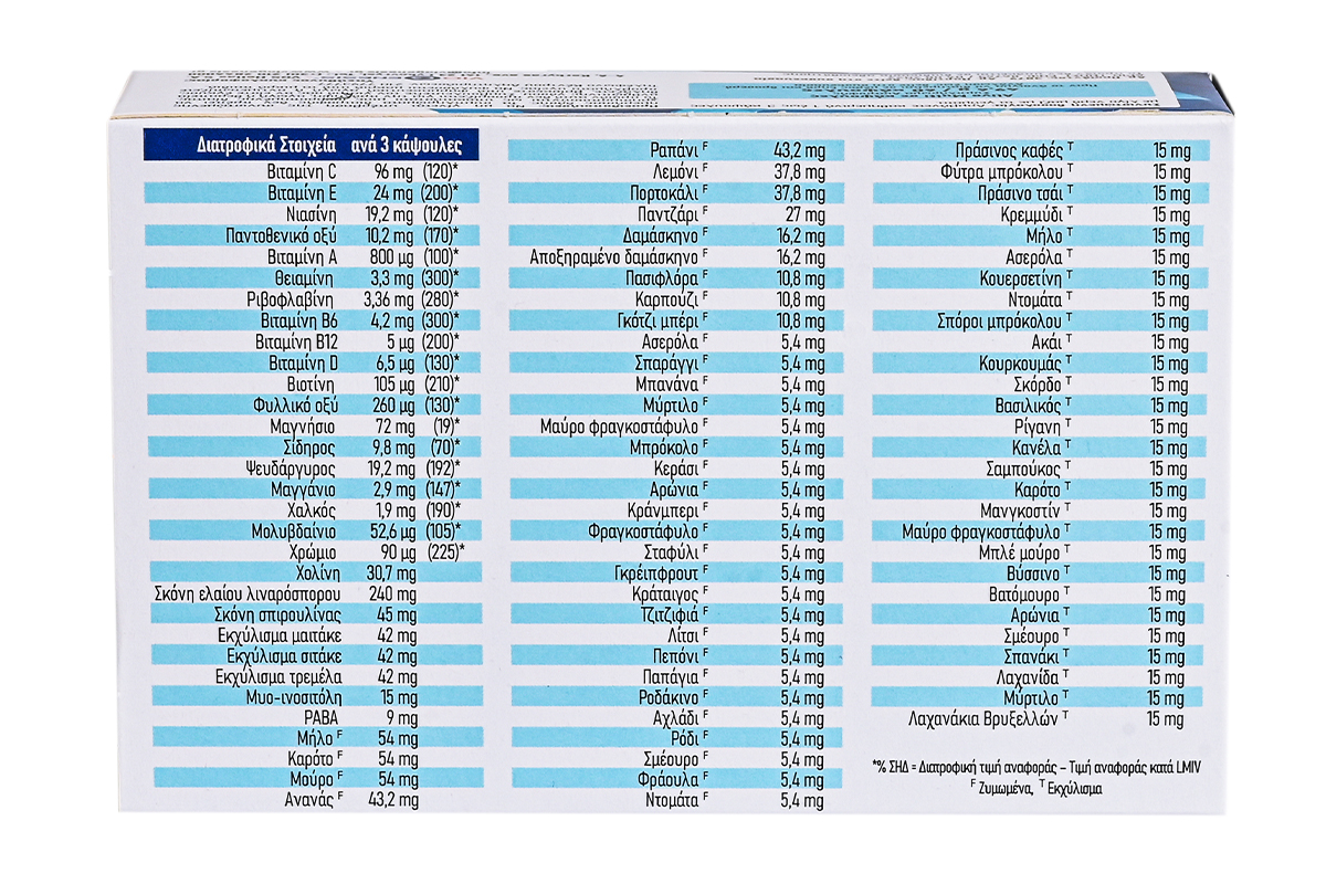 | Ενεργά Συστατικά | ανά 3 κάψουλες | % ΣΗΔ* |