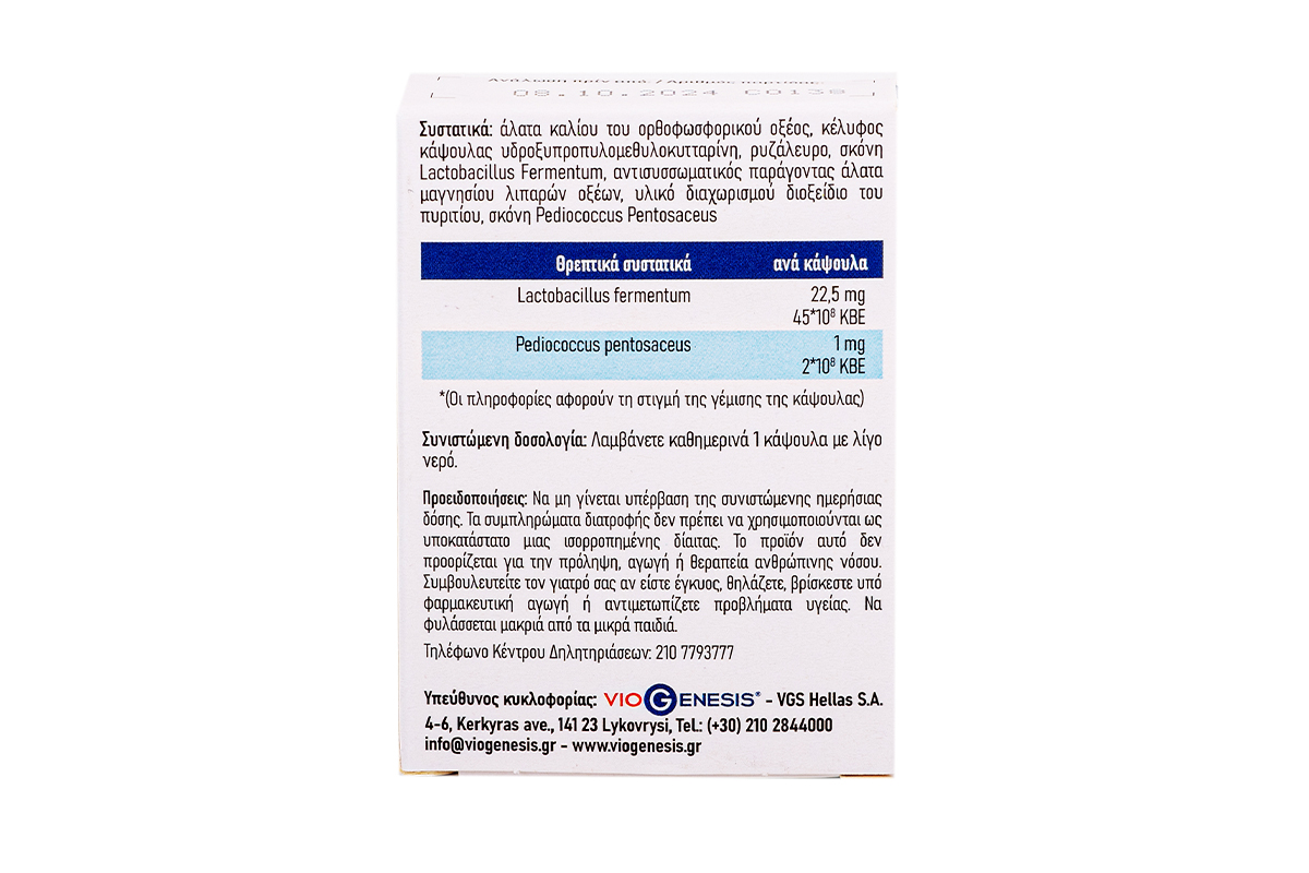 Βασικά συστατικά: σκόνη Lactobacillus Fermentum, σκόνη Pediococcus Pentosaceus.