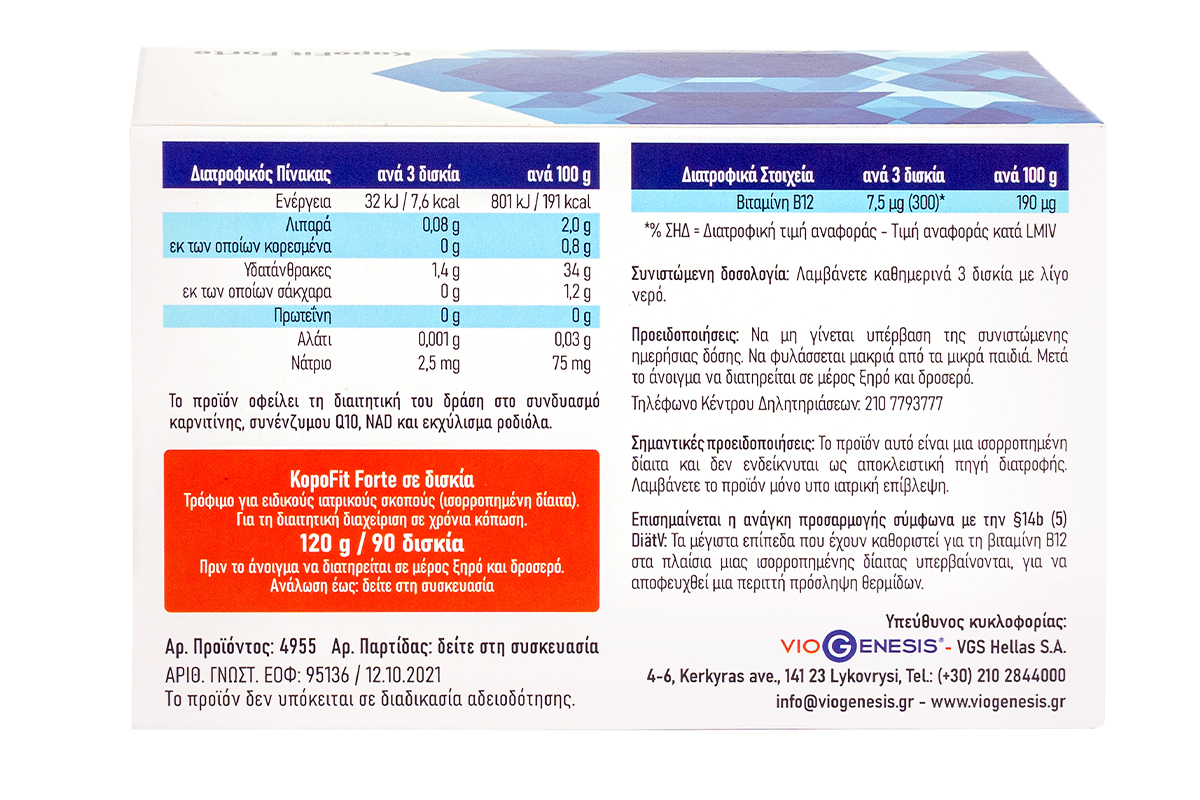 To KopoFit Forte είναι ένα διαιτητικό προϊόν το οποίο ανήκει στην κατηγορία των τροφίμων για ειδικούς ιατρικούς σκοπούς (ισορροπημένη δίαιτα) και προορίζεται για τη διαιτητική διαχείριση σε χρόνια κόπωση.
