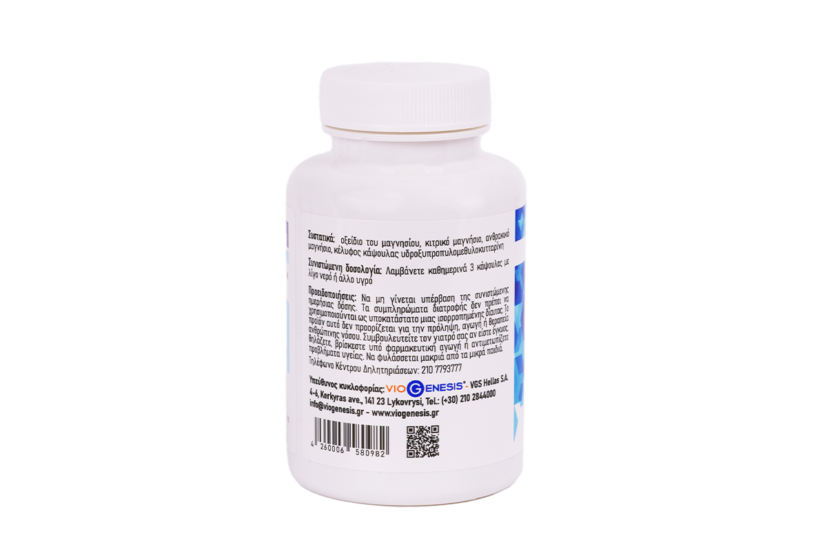 Σύνθεση τριών ειδών μαγνησίου (κιτρικό μαγνήσιο, ανθρακικό μαγνήσιο και οξείδιο του μαγνησίου) σε μία κάψουλα, για την πλήρη κάλυψη των αναγκών του οργανισμού.