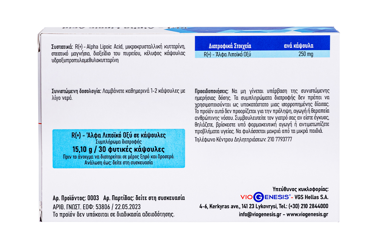 Βασικά συστατικά: R(+) – Άλφα Λιποϊκό Οξύ.