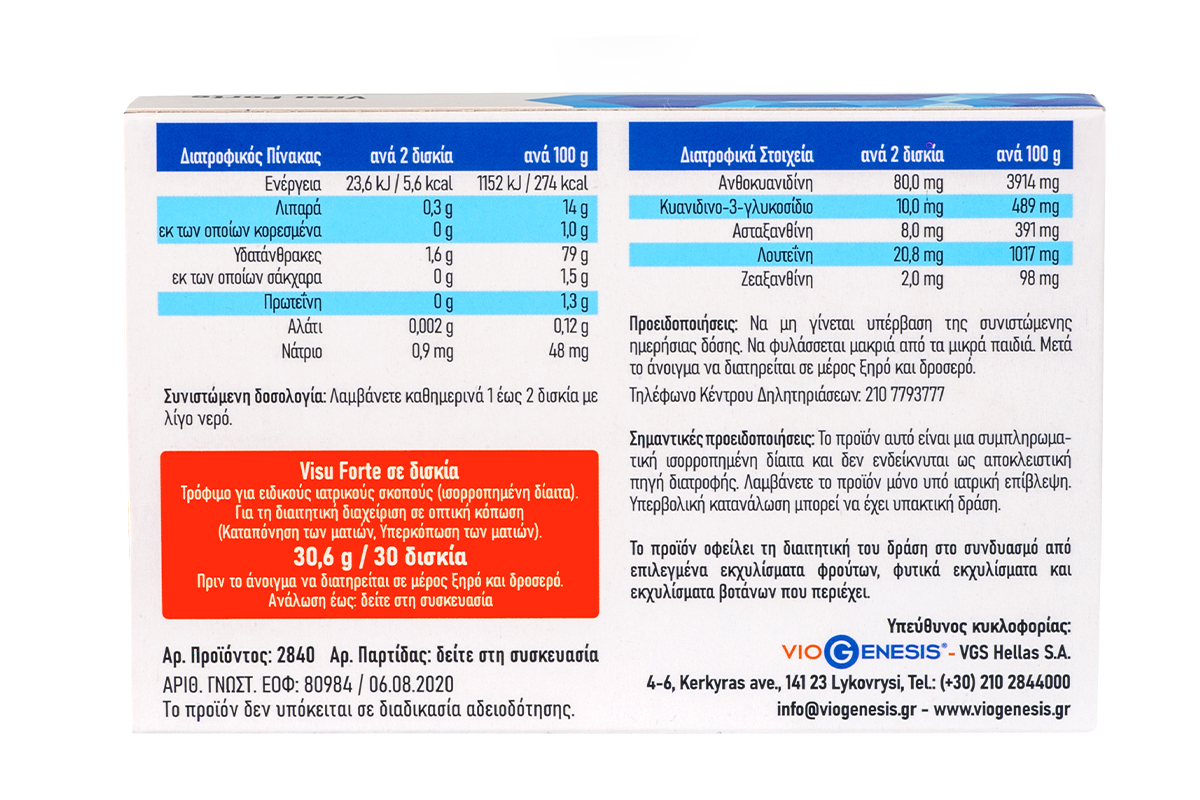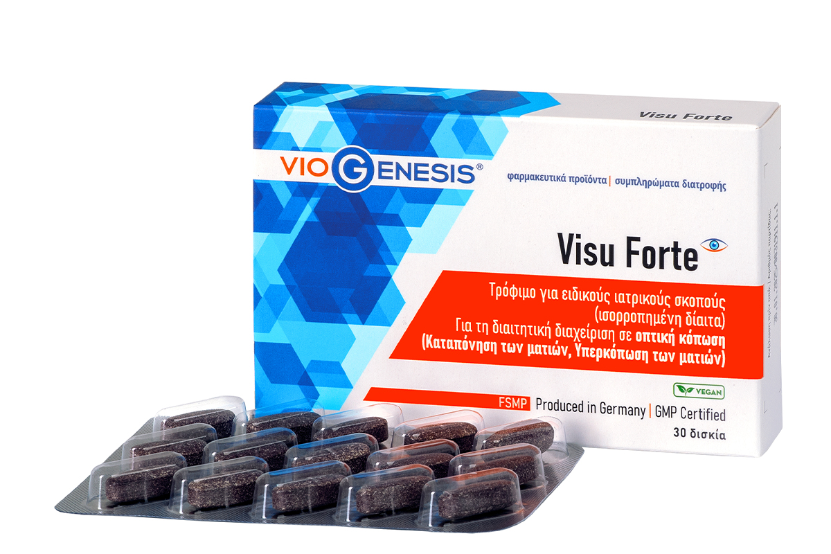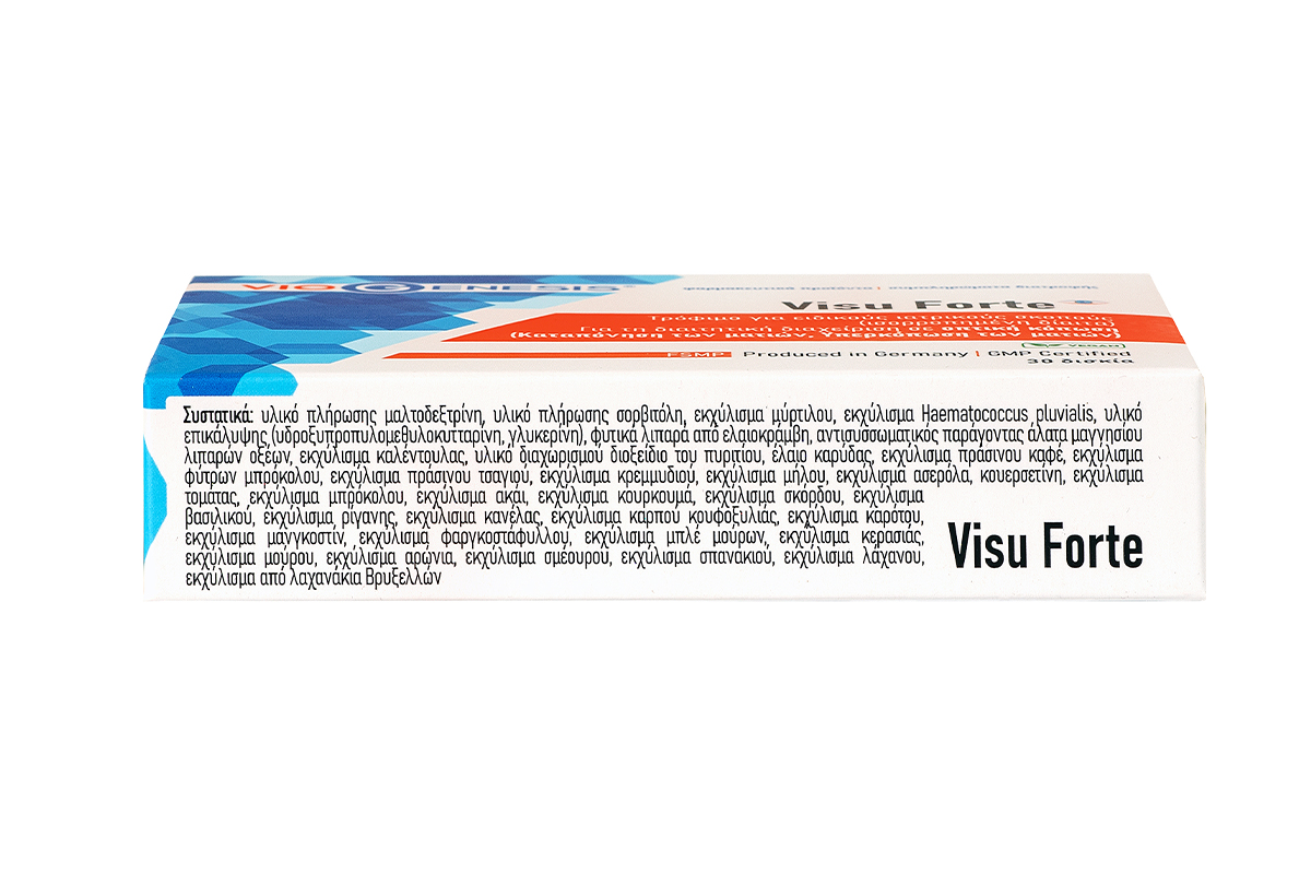 To Visu Forte είναι ένα διαιτητικό προϊόν το οποίο ανήκει στην κατηγορία των τροφίμων για ειδικούς ιατρικούς σκοπούς (ισορροπημένη δίαιτα) και προορίζεται για τη διαιτητική διαχείριση σε οπτική κόπωση (καταπόνηση των ματιών, υπερκόπωση των ματιών).