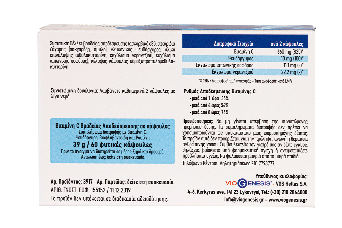 Το Vitamin C Time Release Original αποτελεί συµπλήρωµα διατροφής µε στόχο την εξασφάλιση της παροχής της βιταµίνης C στον οργανισµό για 12 ώρες.
